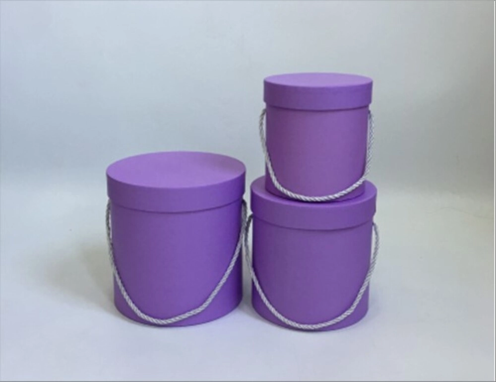 Коробка шляпная, D23xH19,5 см - D17xH14 см, набор (3 шт), с ручкой Фиолетовый