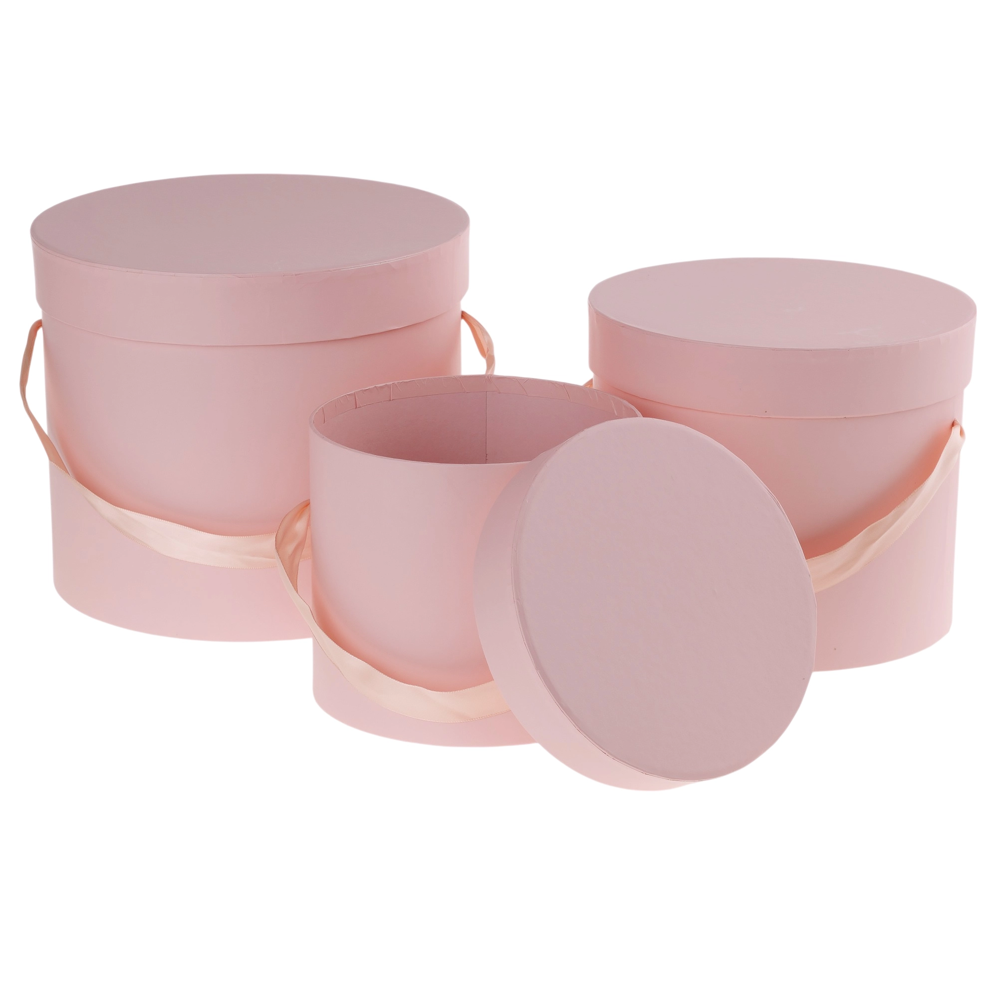 Коробка шляпная, D23xH19,5 см - D17xH14 см, набор (3 шт), с ручкой Коралловый