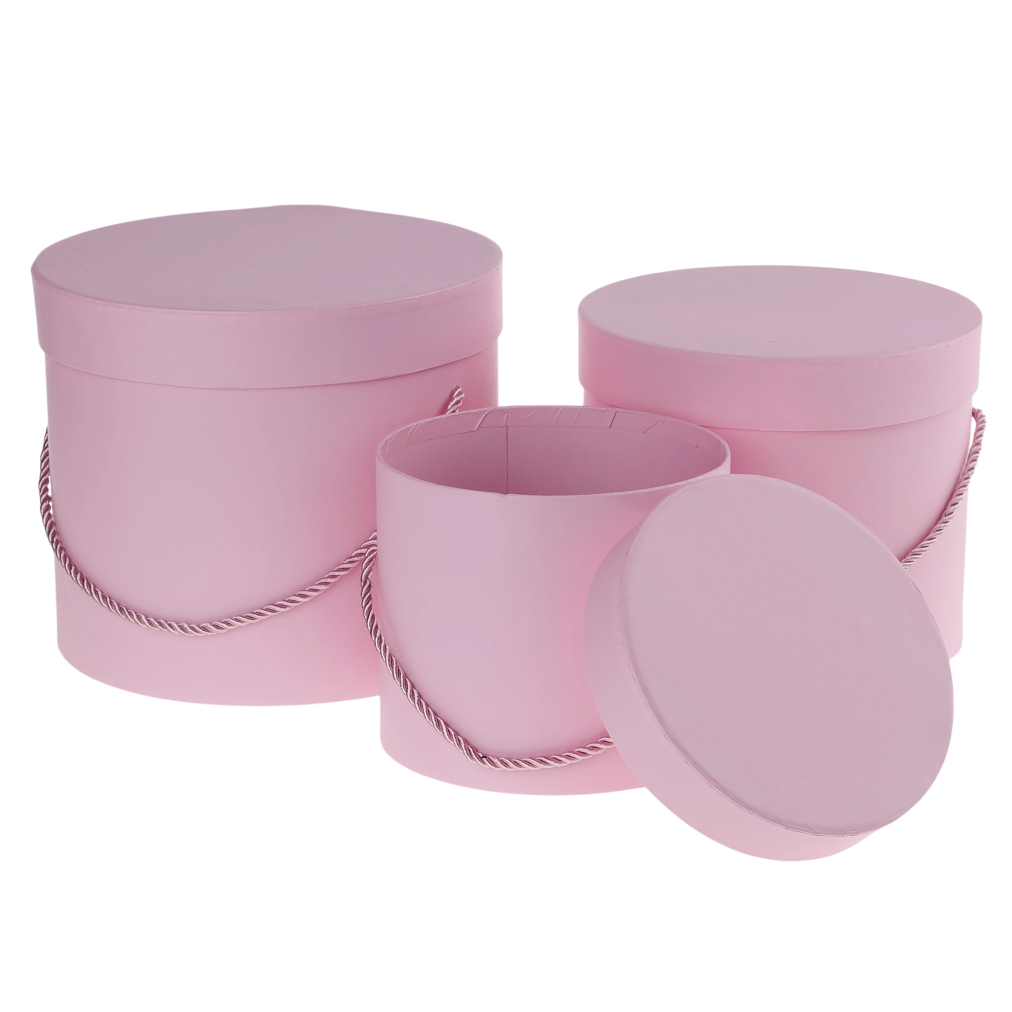 Коробка шляпная, D23xH19,5 см - D17xH14 см, набор (3 шт), с ручкой Розовый
