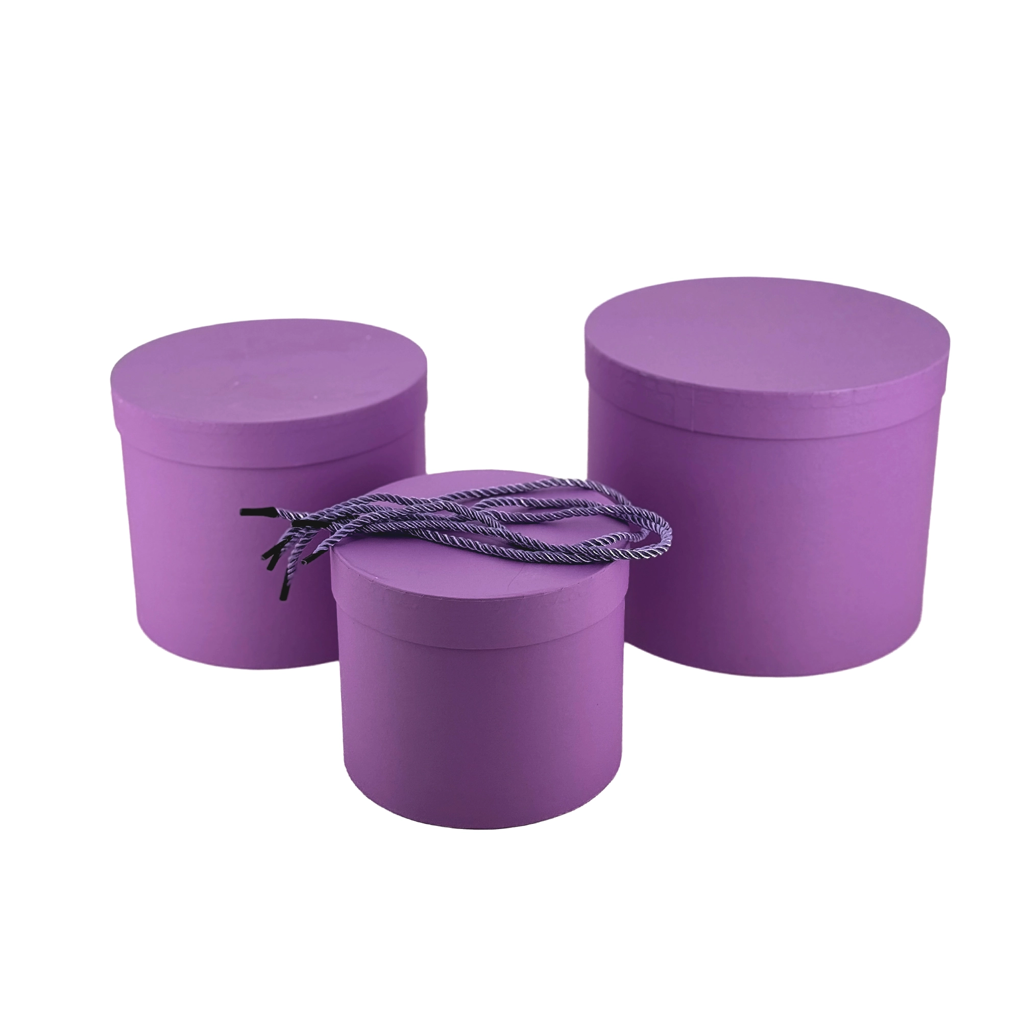 Коробка шляпная, D23xH19,5 см, D18,5xH17 см, D16xH15 см, набор (3 шт), с крышкой, ручкой Сиреневый