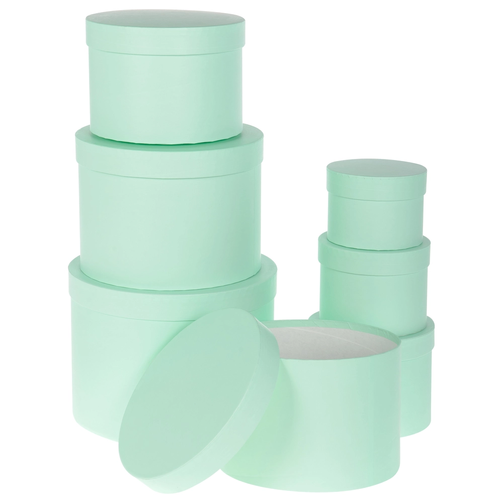 Коробка шляпная, D25xH18 см - D11xH8,5 см, набор (7 шт) Мятный