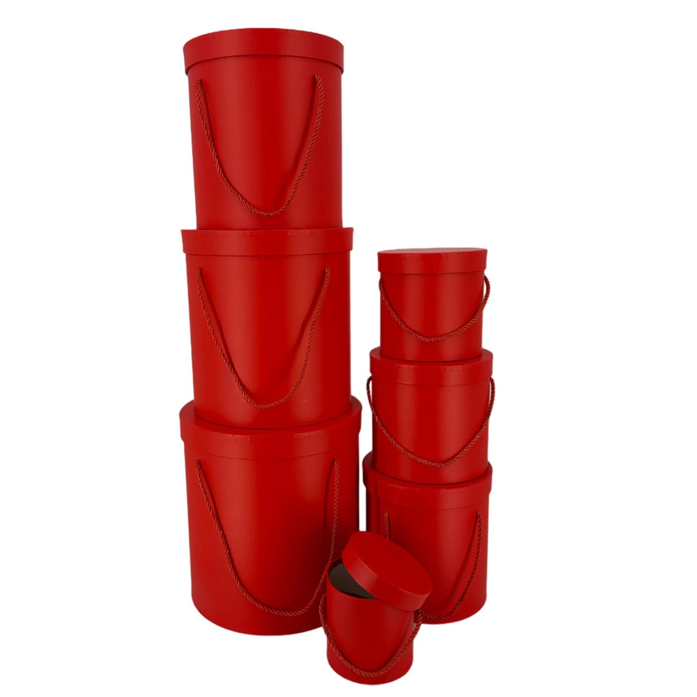 Коробка шляпная, D28xH30 см, D12xH12 см, набор (7 шт), с крышкой, с ручкой Красный