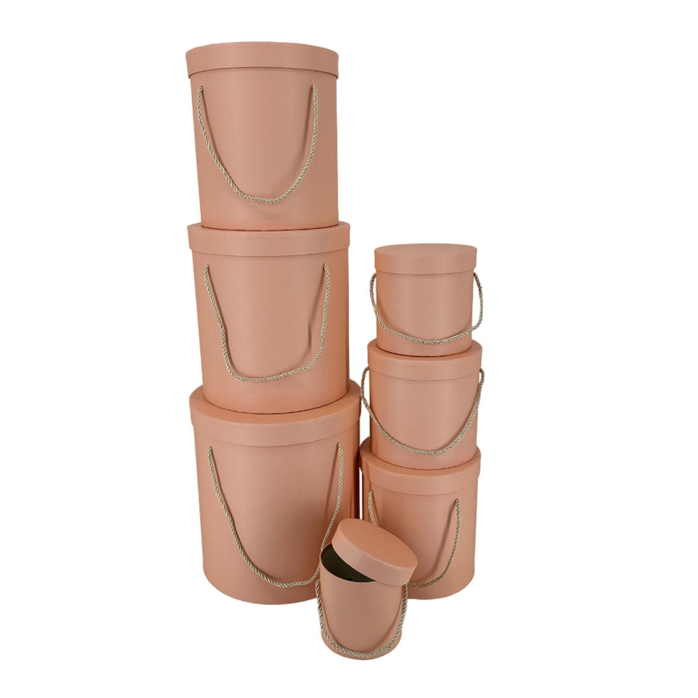 Коробка шляпная, D28xH30 см - D12xH12 см, набор (7 шт), с ручкой Персиковый