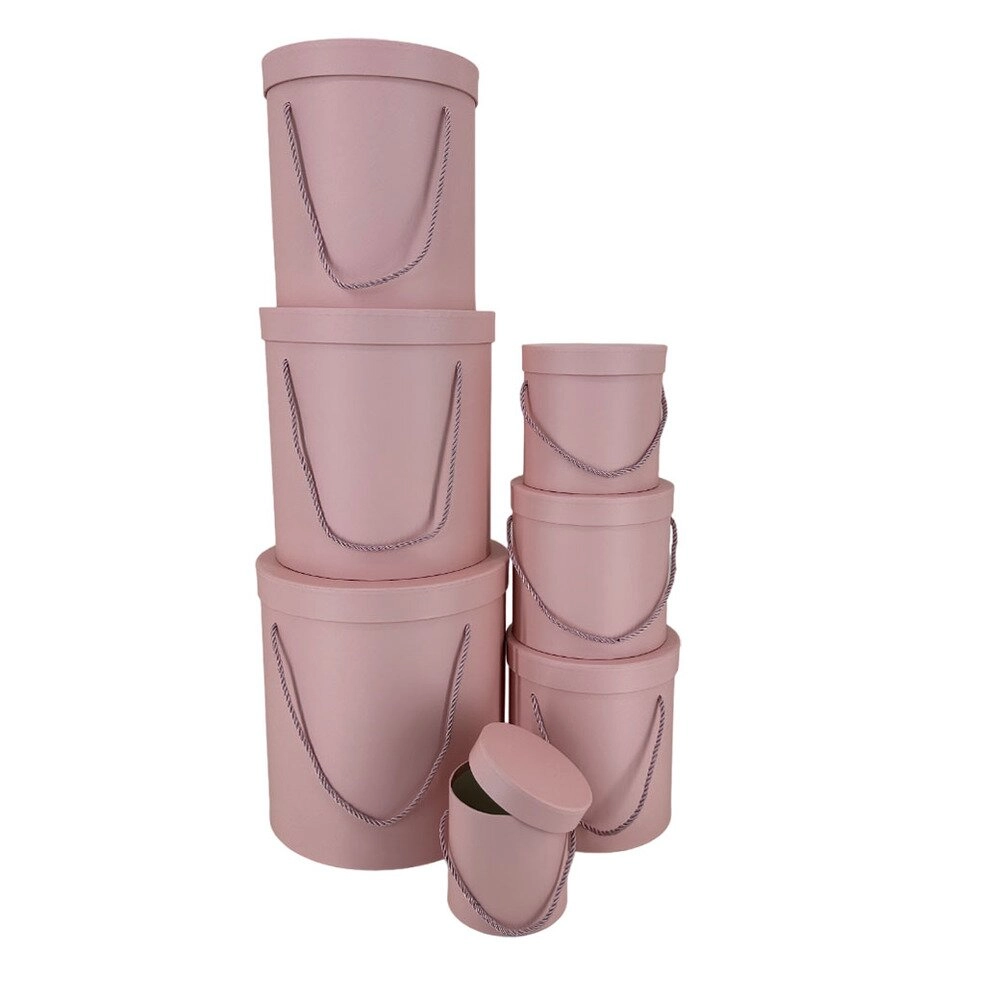Коробка шляпная, D28xH30 см - D12xH12 см, набор (7 шт), с ручкой Светло-розовый