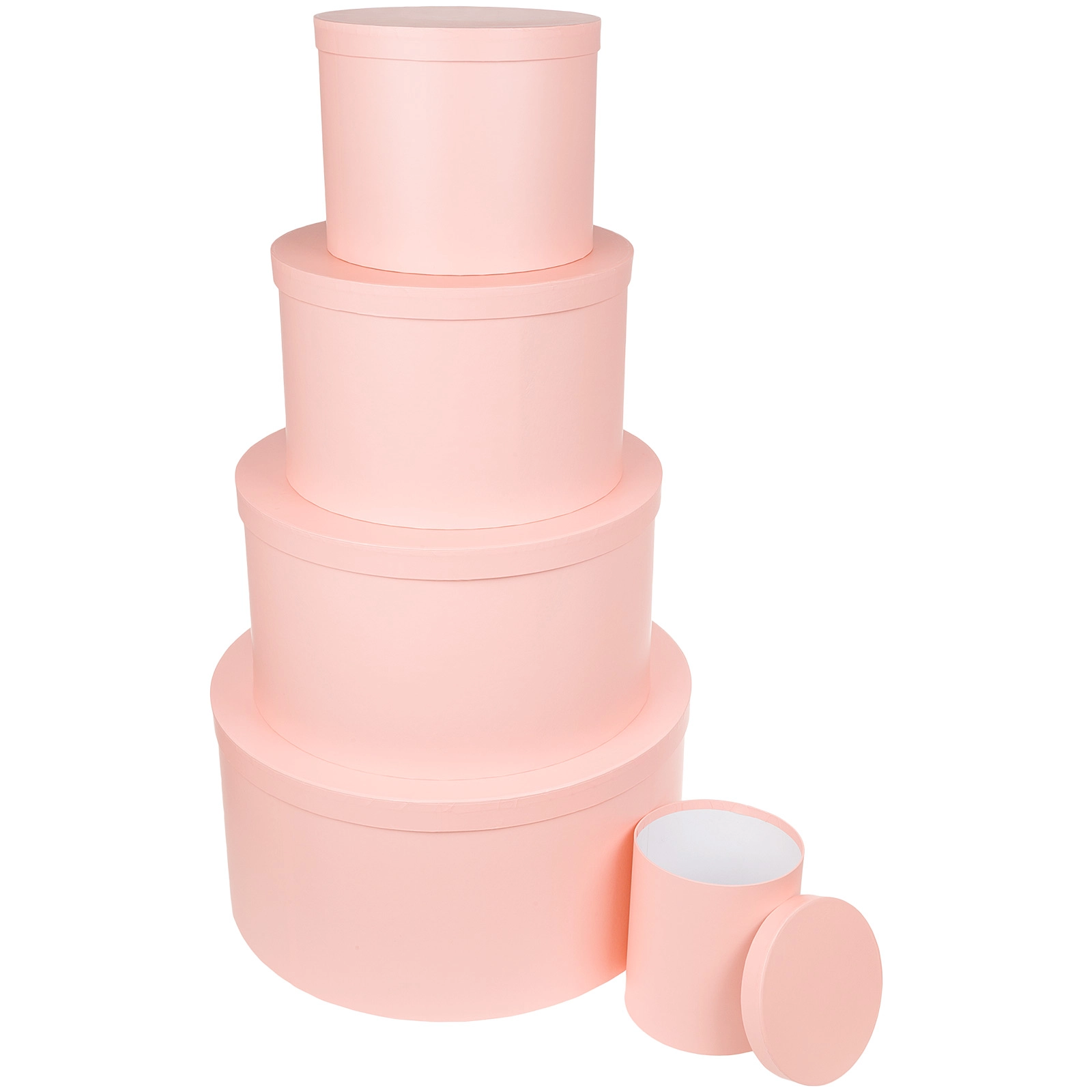 Коробка шляпная, D60xH30 см - D20xH22 см, набор (5 шт) Персиковый
