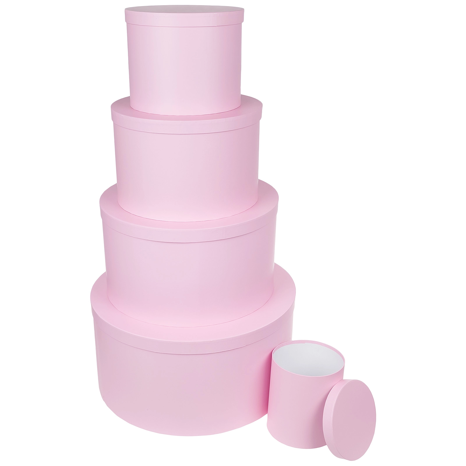 Коробка шляпная, D60xH30 см - D20xH22 см, набор (5 шт) Розовый