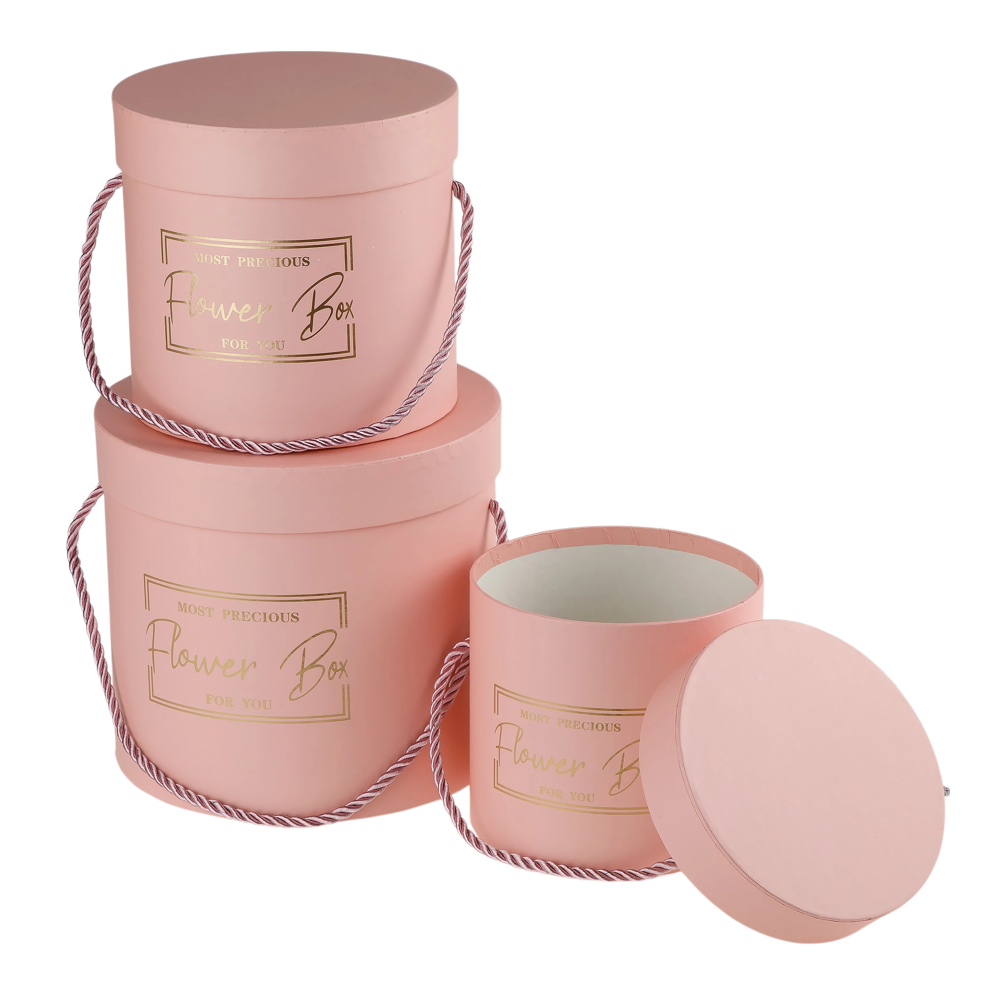 Коробка шляпная "Flower box", D18xH17 см - D13xH12 см, набор (3 шт) Розовый