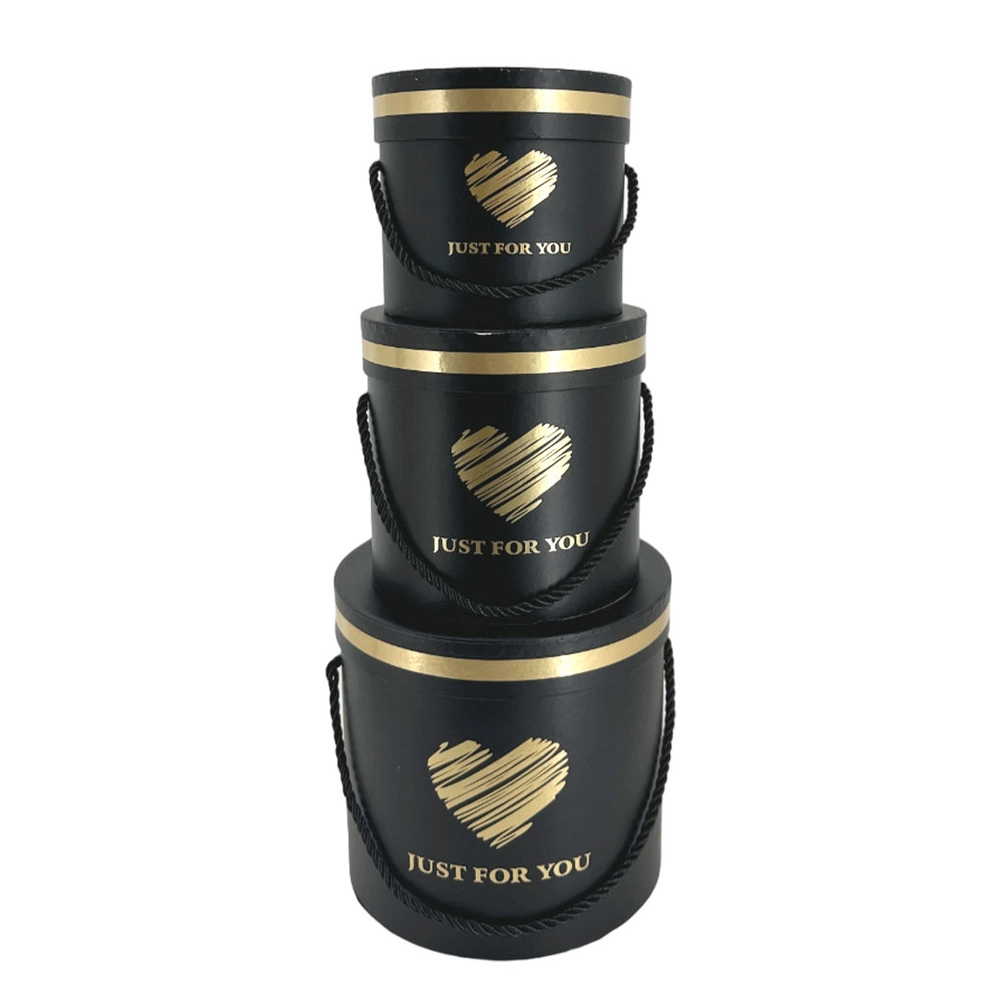 Коробка шляпная "Just for you", D18xH17 см, D15xH14,5 см, D13xH12 см, набор (3 шт), с крышкой Черный