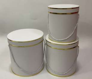 Коробка шляпная "Lux", D23xH23 см - D18xH19 см, набор (3 шт), с ручкой Белый