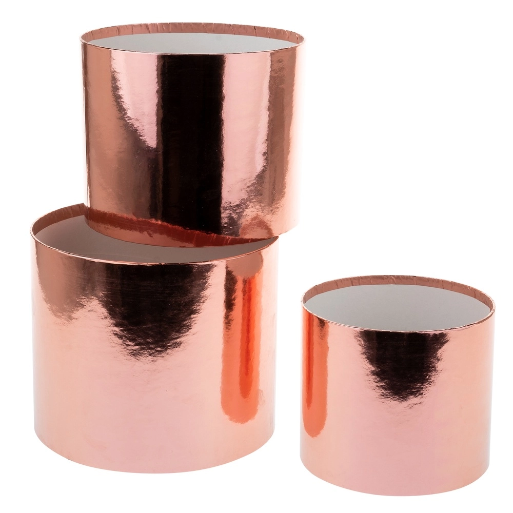 Коробка шляпная "Металлик", D20xH17 см - D15xH13 см, набор (3 шт), без крышки Розовый