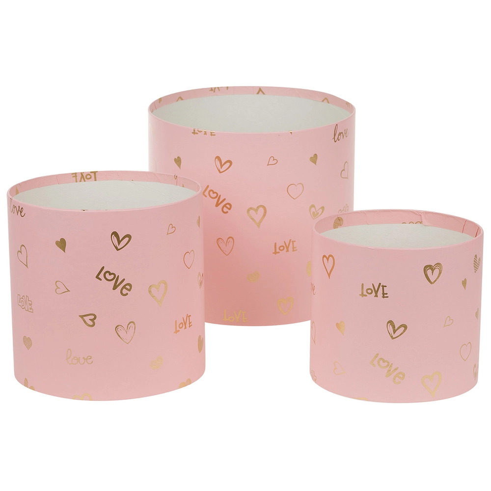 Коробка шляпная "Принт", D18хH17 см, D15хH14,5 см, D13хH12 см, набор (3 шт), без крышки Розовый