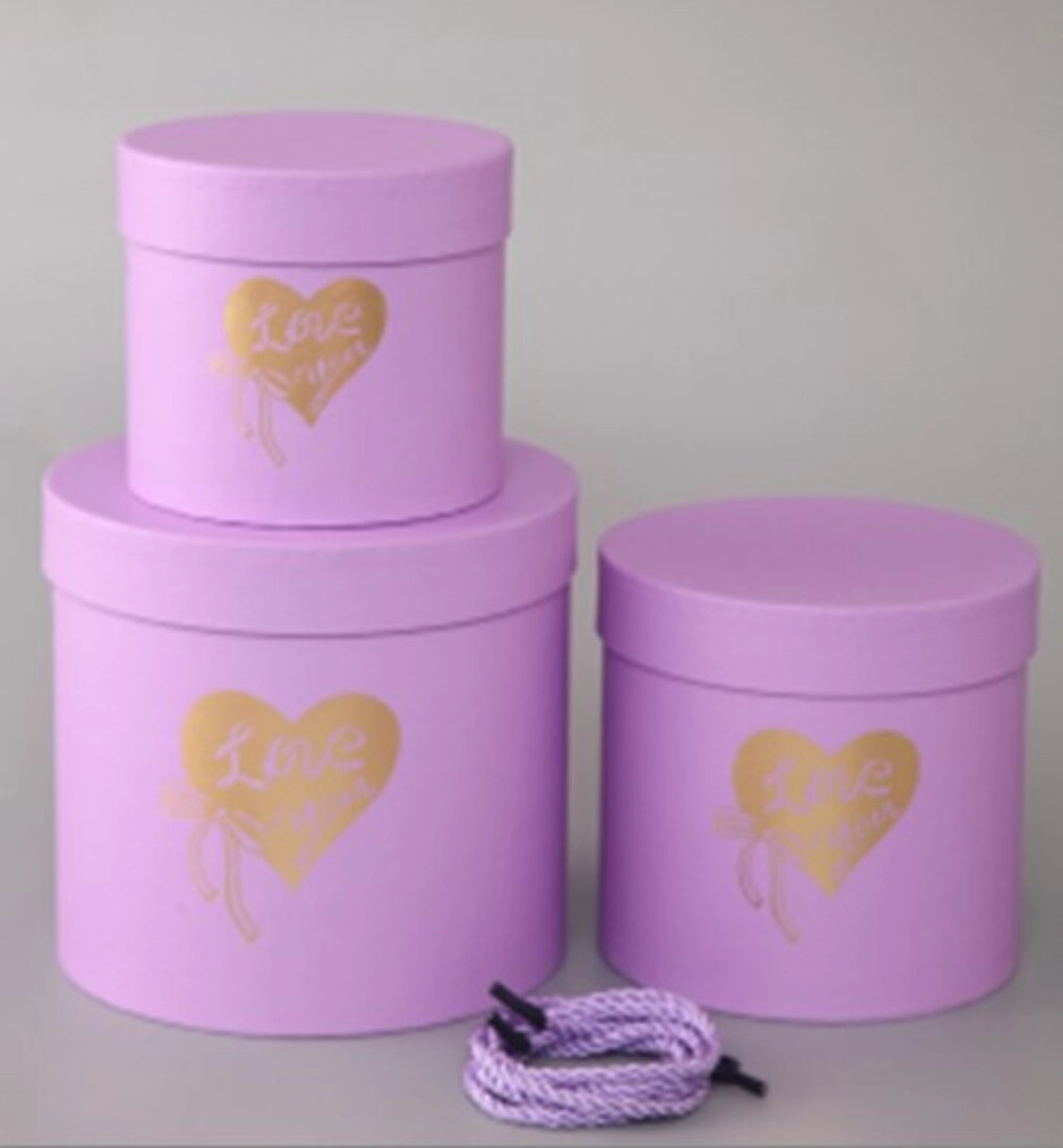 Коробка шляпная "Принт", D18xH17 см - D13xH12 см, набор (3 шт) Сиреневый