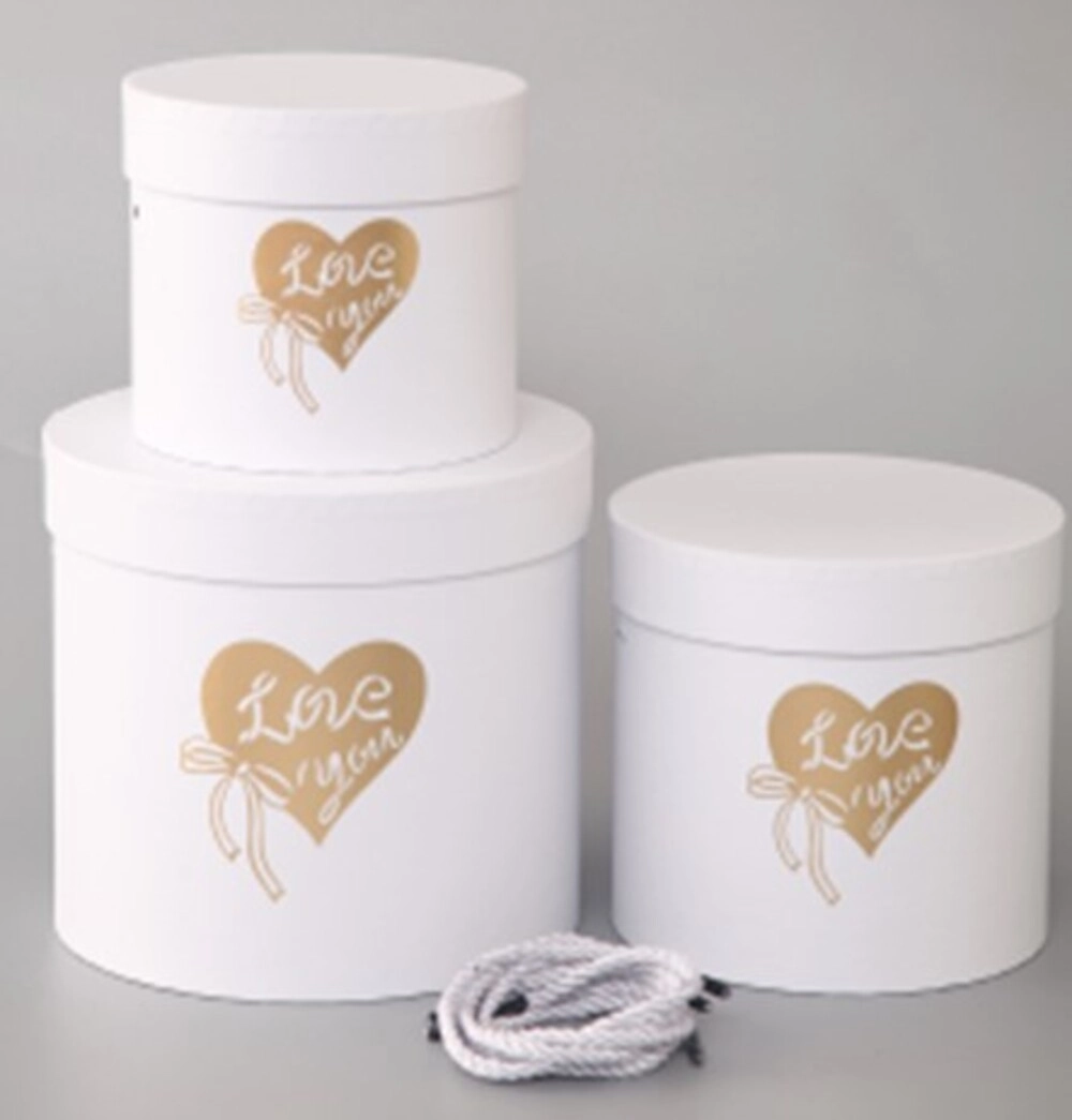Коробка шляпная "Принт", D18xH17 см, D15xH14,5 см, D13xH12 см, набор (3 шт), с крышкой Белый