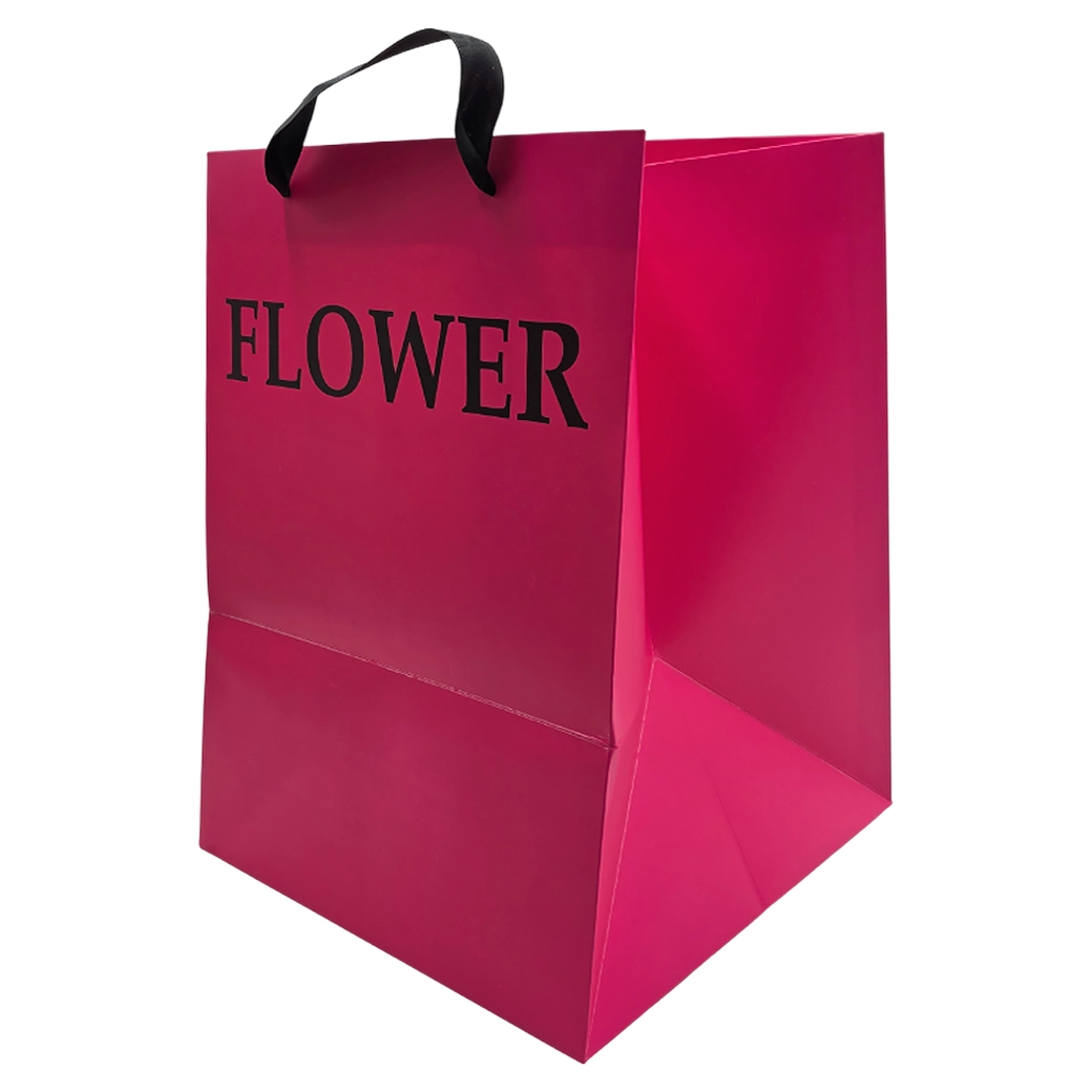Сумка подарочная "Flower" (картон), 25x25xH35 см, набор (2 шт) Фуксия