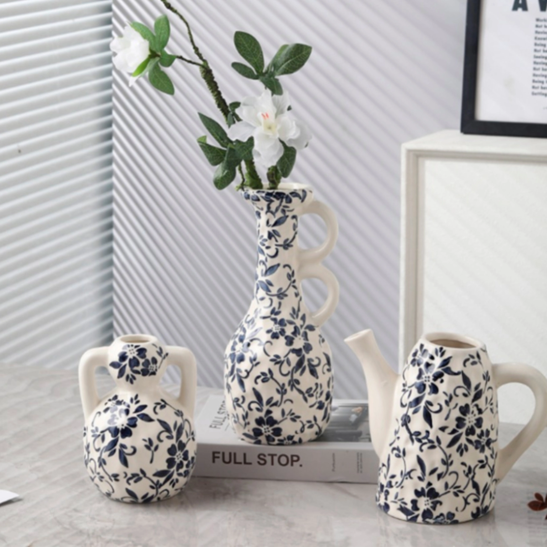 Ваза "Flower Blue" (керамика), D13xH29 см Белый-синий