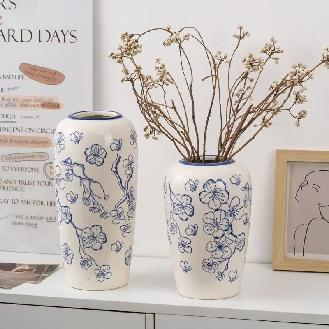 Ваза "Flower Blue" (керамика), D14,5xH29 см Белый-синий