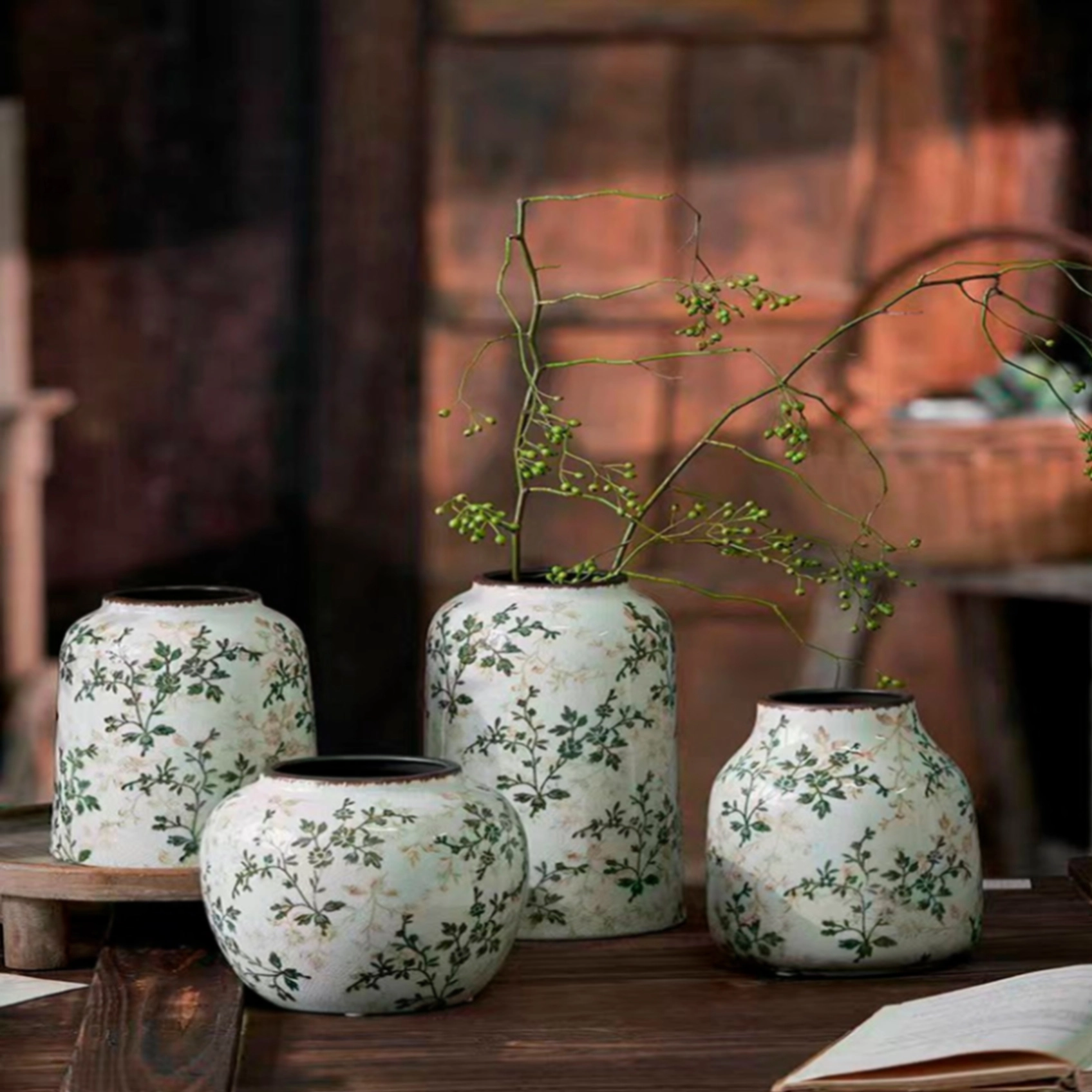 Ваза "Flower Green" (керамика), D14xH26 см Белый-зеленый