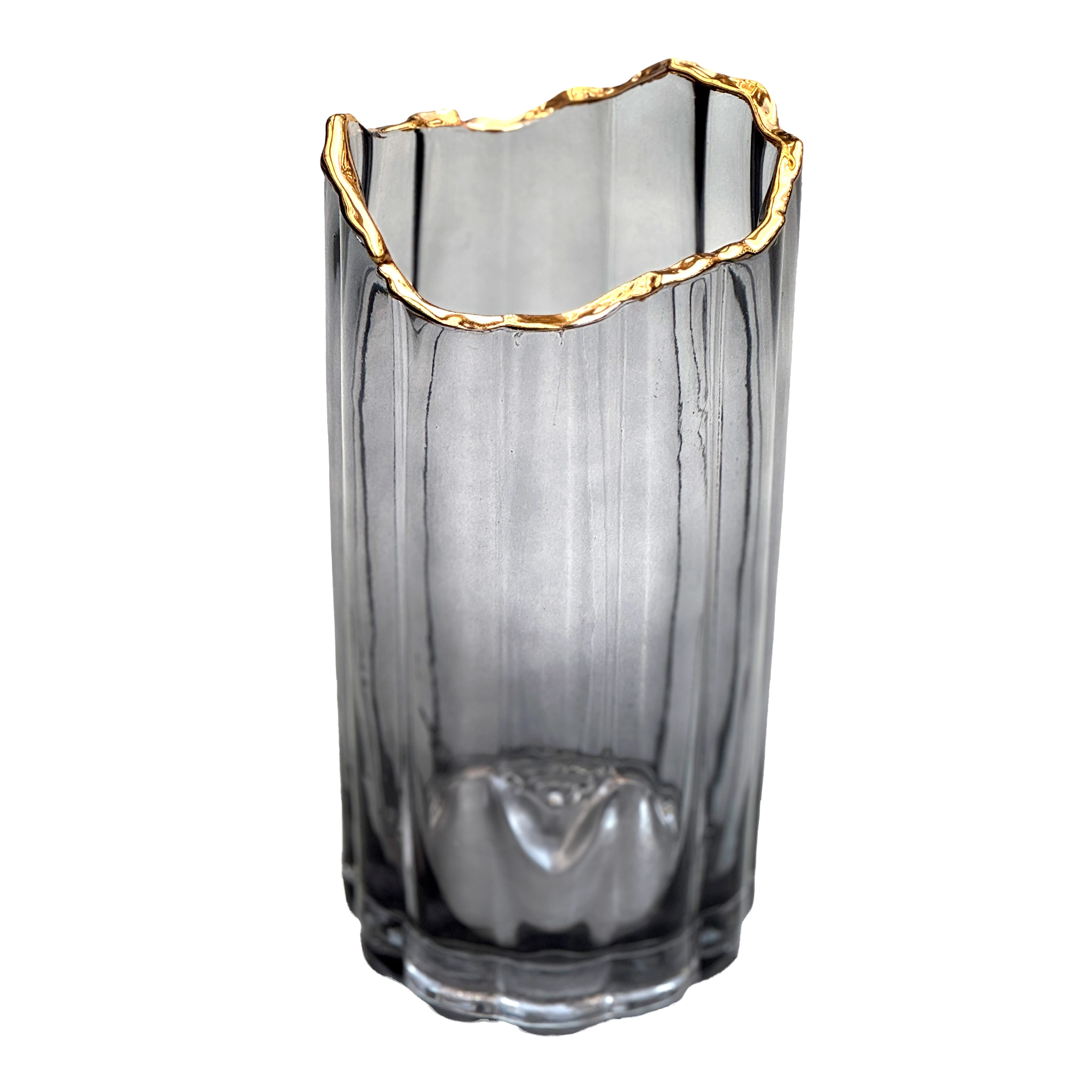 Ваза "Gold rough edge" (стекло), D12xH30 см Серый