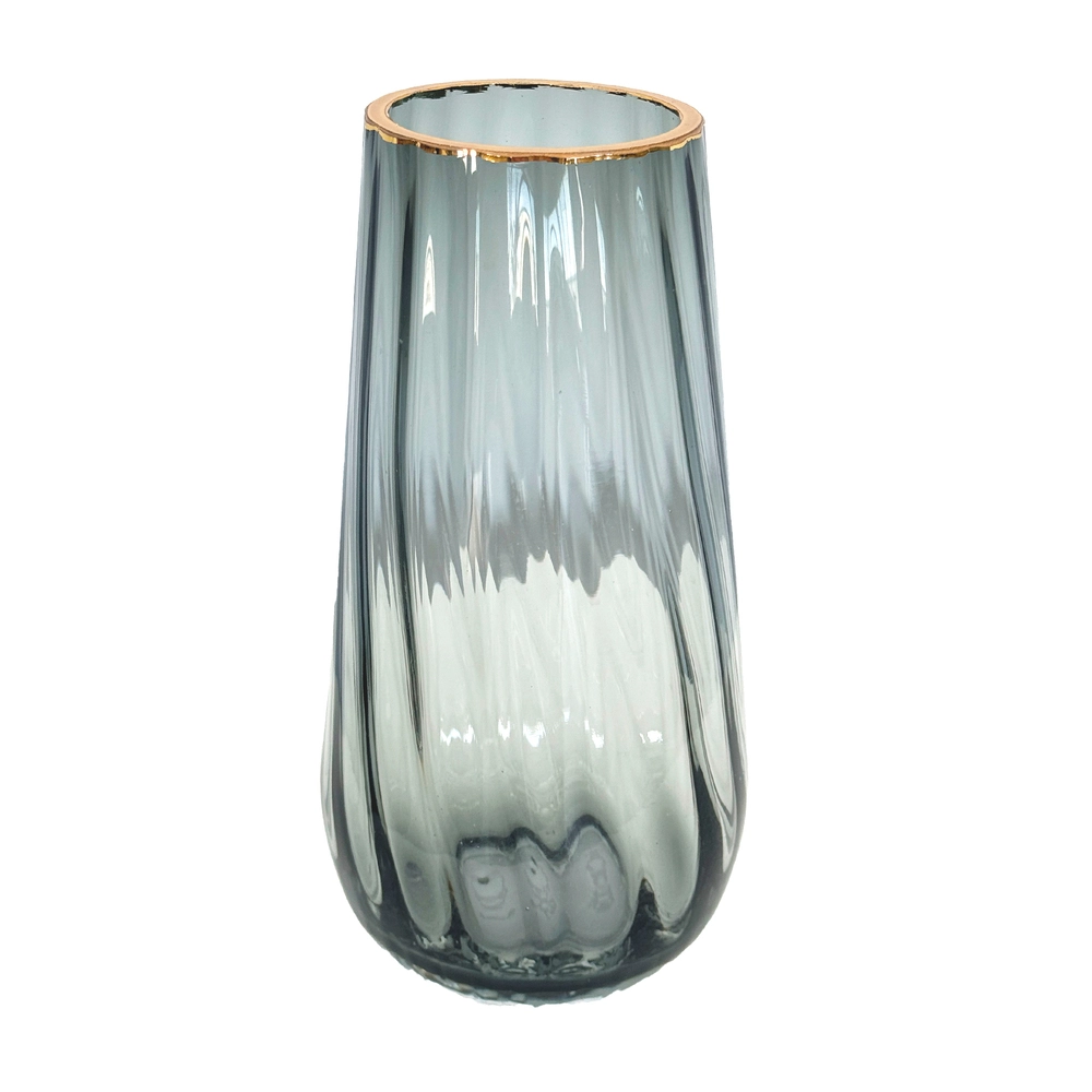 Ваза "Капля" (стекло), D10хH20 см, с золотым ободком Серый