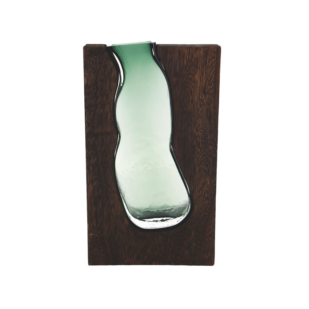 Ваза "Lake" (дерево, стекло), D14,5xH24 см Зеленый