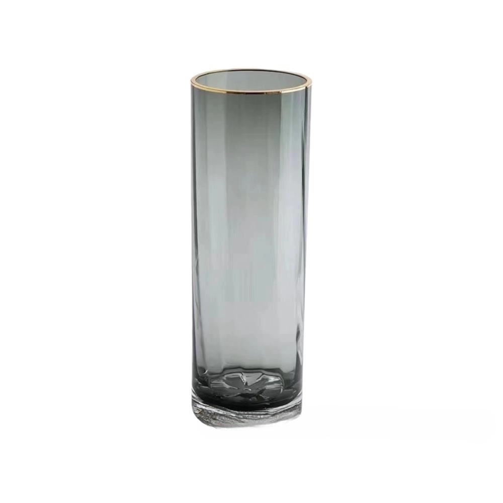 Ваза "Трубка 100" (стекло), D10хH25 см, с золотым ободком Серый