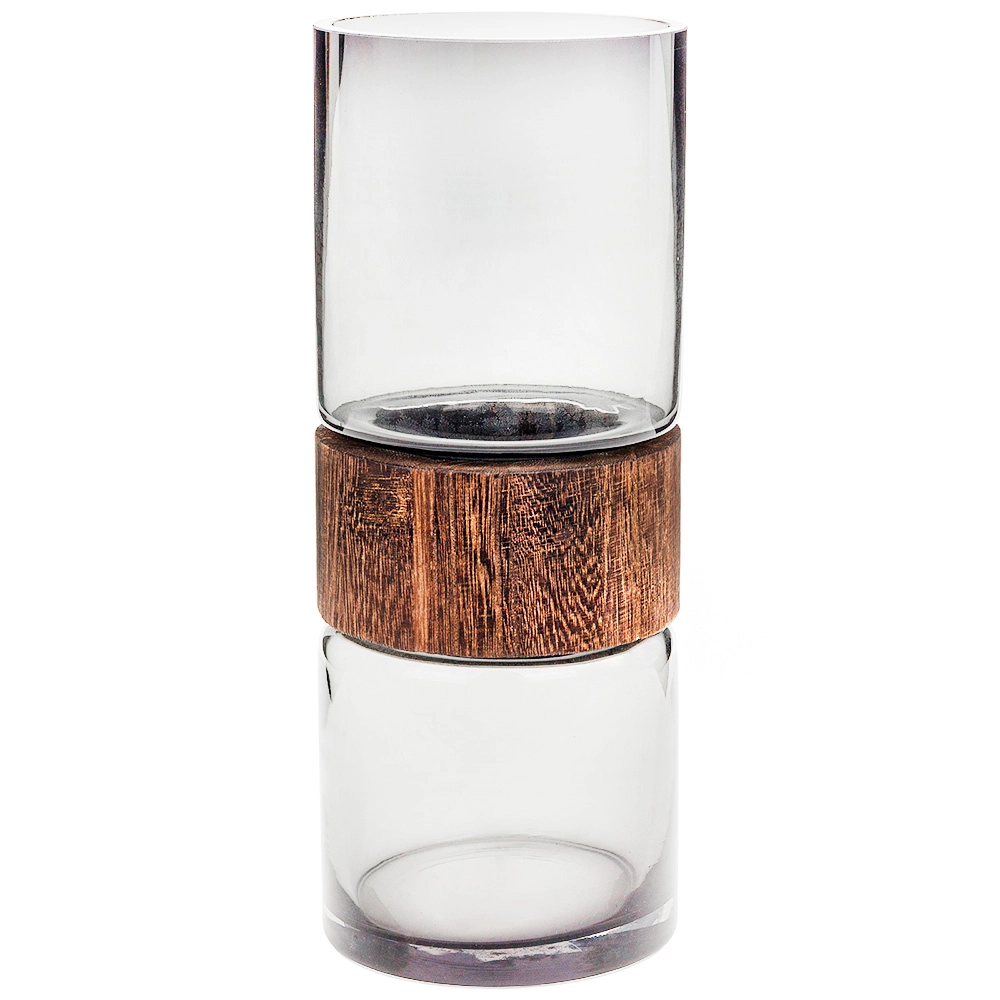 Ваза "Wood a tube" (дерево, стекло), D10xH25 см Серый