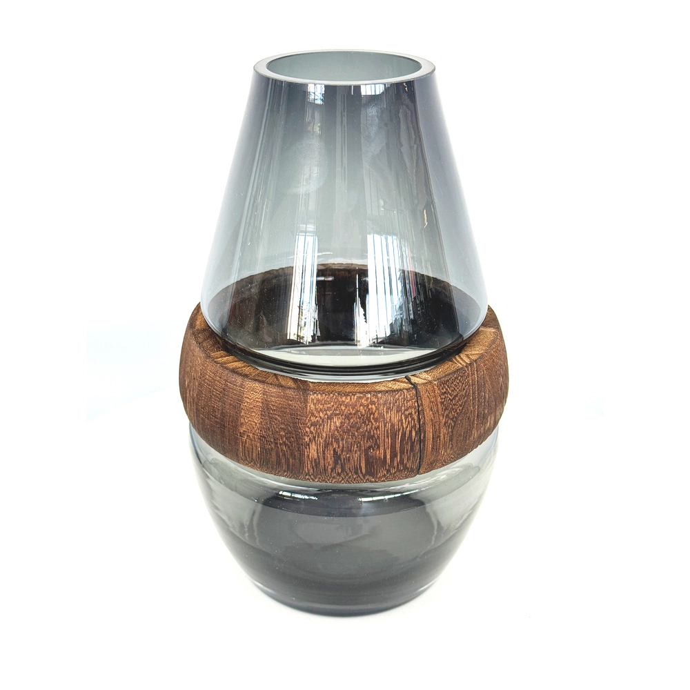 Ваза "Wood ring" (дерево, стекло), D18xH29 см Серый