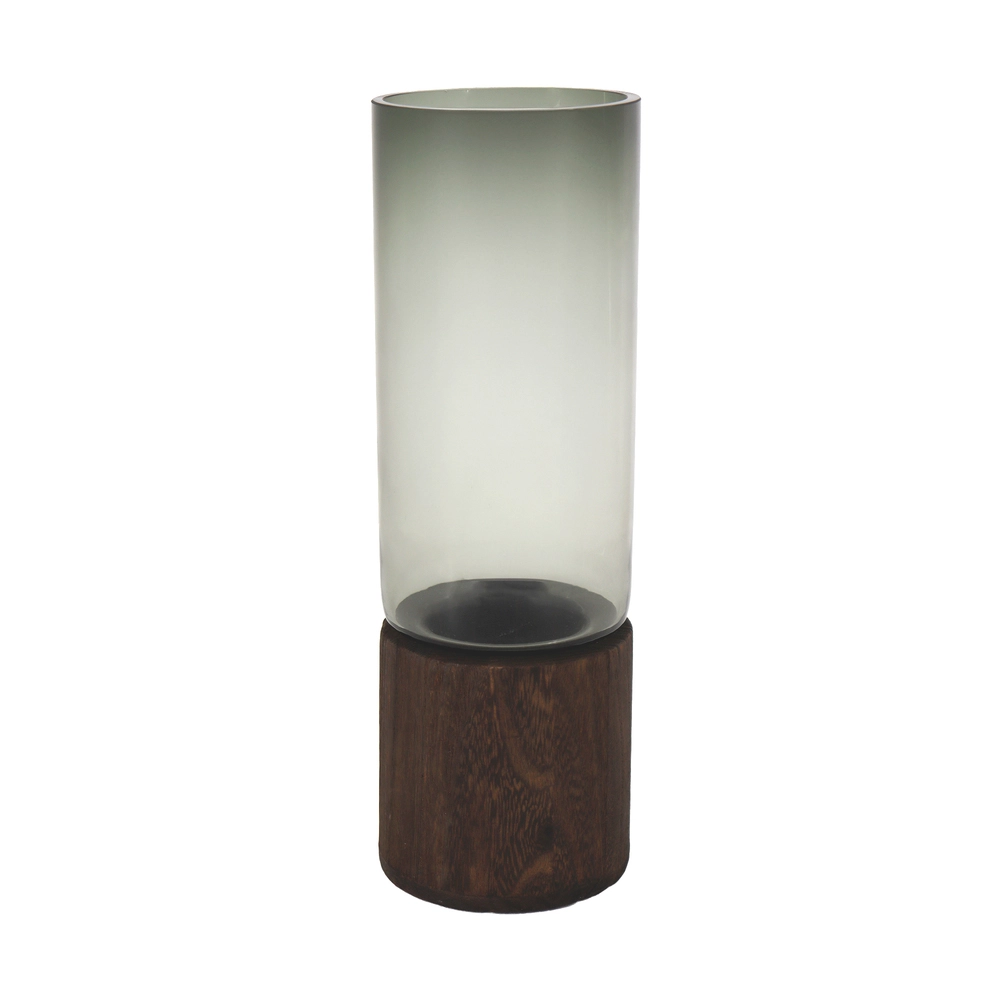 Ваза "Wood stand" (дерево, стекло), D10хH30 см, на подставке Серый
